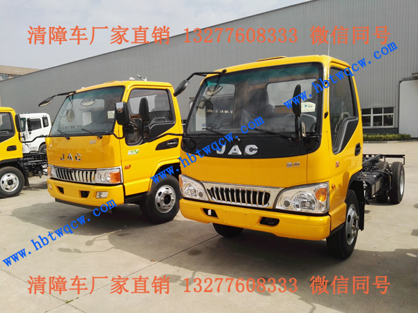 江淮國五藍(lán)牌清障車配置介紹:底盤配江淮康鈴單排前翻駕駛室,軸距3308mm,HFC4DF1-2D2江淮朝柴117馬力,5檔,3噸后橋,7.00R16,動轉(zhuǎn),氣剎,808款駕駛室、氣制動,電熄火、暖風(fēng)、電預(yù)熱、感載比例閥、離合助力,ABS。