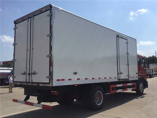 采用我公司液壓吸附一體成型生產(chǎn)線制造,保溫性能達到國家A級標(biāo)準(zhǔn), 廂體內(nèi)外面料采用 新款納米玻璃鋼(不吸光、隔熱性好、硬度強、抗氧化),廂體厚度為8cm,廂體尺寸:6800x2310x2500mm,內(nèi)襯骨架為防銹處理武鋼優(yōu)質(zhì)輕鋼型材,保溫材料為無空隙填充聚氨酯發(fā)泡,廂體底部為鋁合金花紋板或選平面納米玻璃鋼,廂體采用鍍鋅不銹鋼包角,加厚型鋁合金包邊,后門框為不銹鋼,加厚型不銹鋼后門合頁及鎖件,廂體內(nèi)部采用LED照明燈及廂體示寬燈。