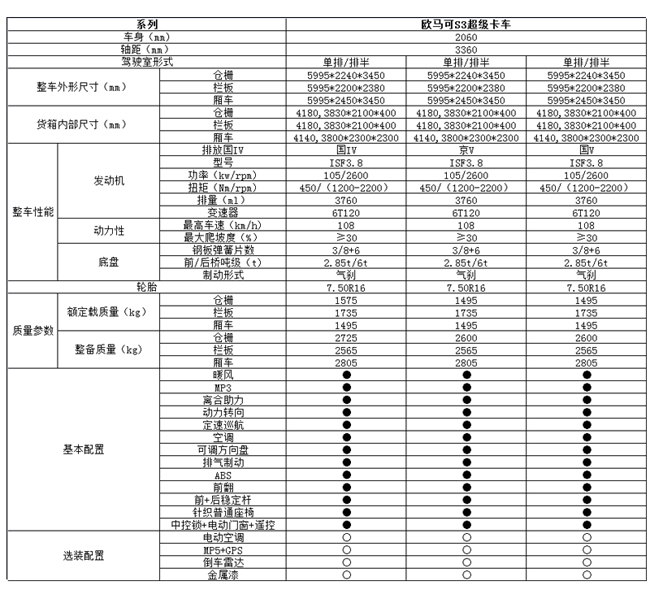 歐馬可S3系超級(jí)卡車底盤配置: